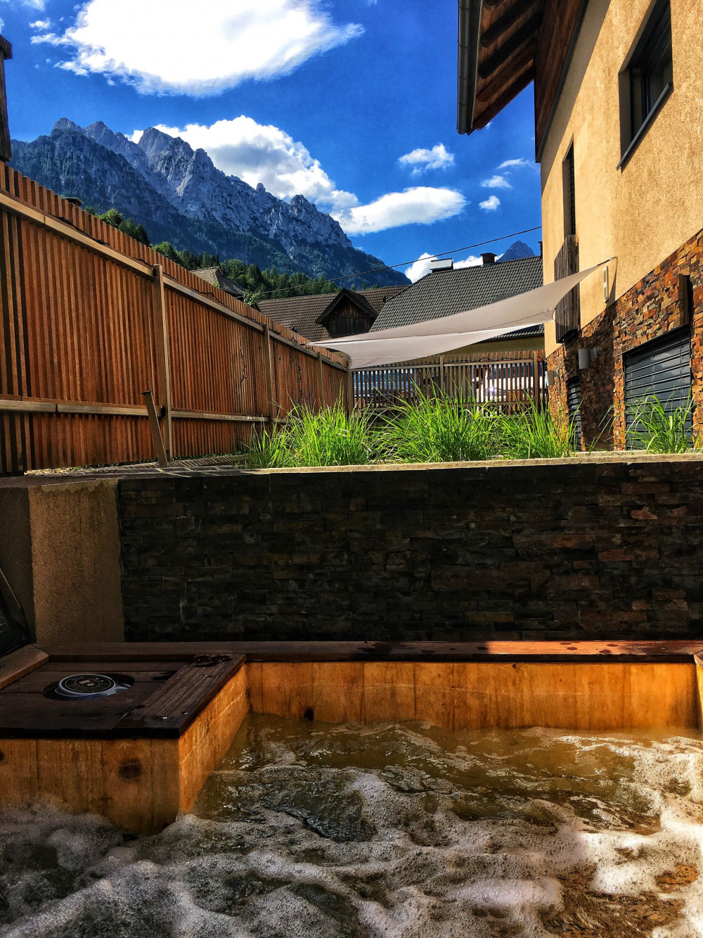 Skupaj z apartmajem 4 si deli savno in zunanji masažni bazen.